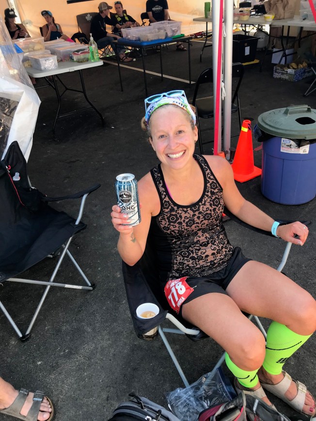 I BEAT MY GOAL! Holy shit it was a ride. And to be honest, as I finished, I felt like I could have run another 5 km. With the strategy of ultra running being a mix of running on flats and downhills, power walking on inclines, my body actually felt incredibly good. Aaron was there at the finish line with my single tall-boy can of Blindman Longshadows IPA on ice. Dan and Andy were not there immediately because they didn’t think I’d be there by that time!
