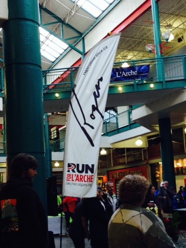 The race started and finished at the Eau Claire Market near downtown Calgary. I had never been here, so was relying on my GPS to be my guide. Made it no problem, and secured a sweet parking spot right outside the food court entrance. Race day packet pickup was also a breeze! I had all my supplies by 9:00 am, so I was very grateful for the indoor seating before this cold race!